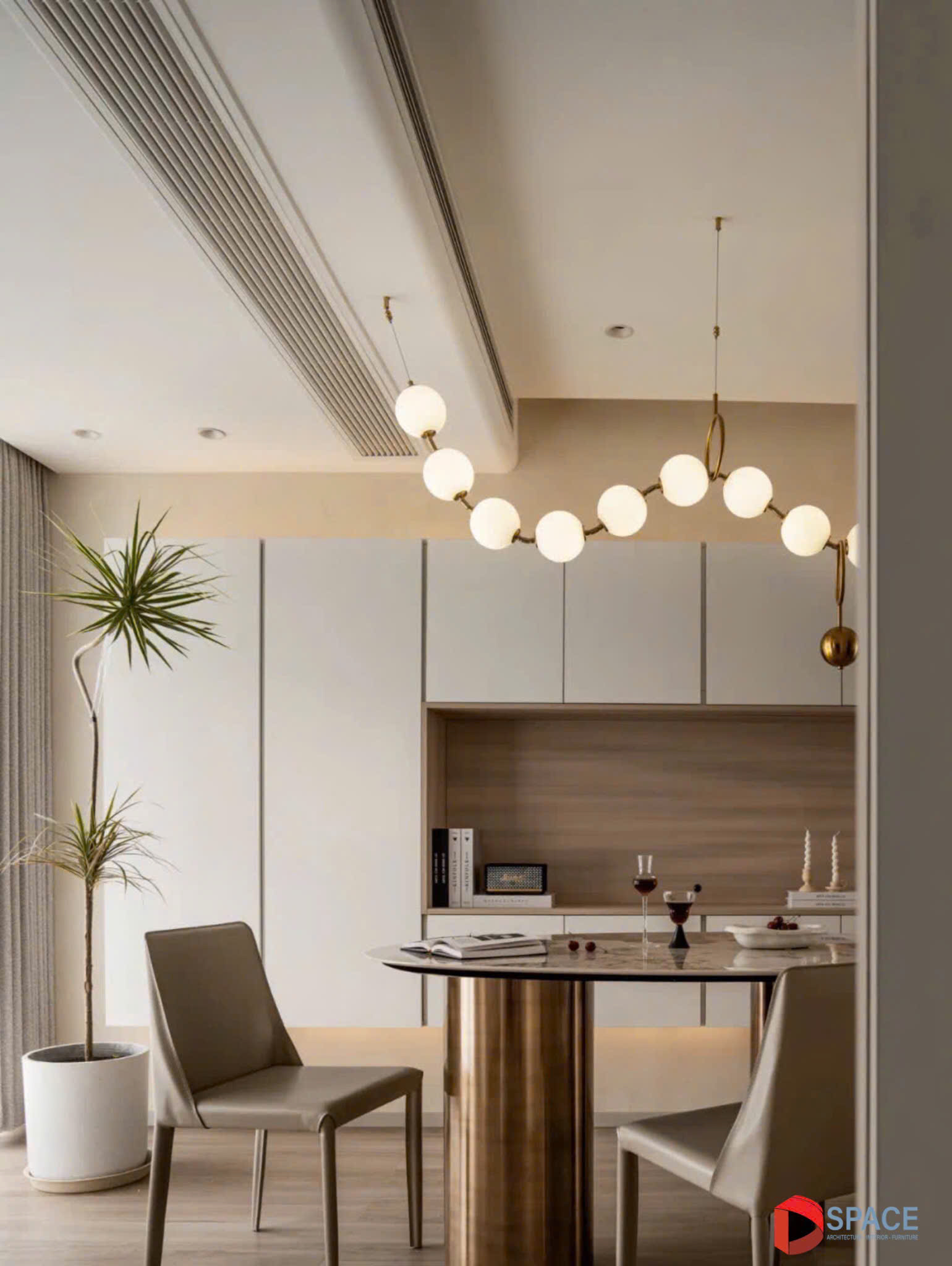 Các chi tiết trang trí được lược giản tối đa, kết hợp với không gian mở thoáng đãng, mang đến hơi thở của sự hiện đại và tinh tế. Những đường nét thiết kế gọn gàng tạo nên vẻ đẹp thanh lịch, nhẹ nhàng mà không kém phần ấm cúng.