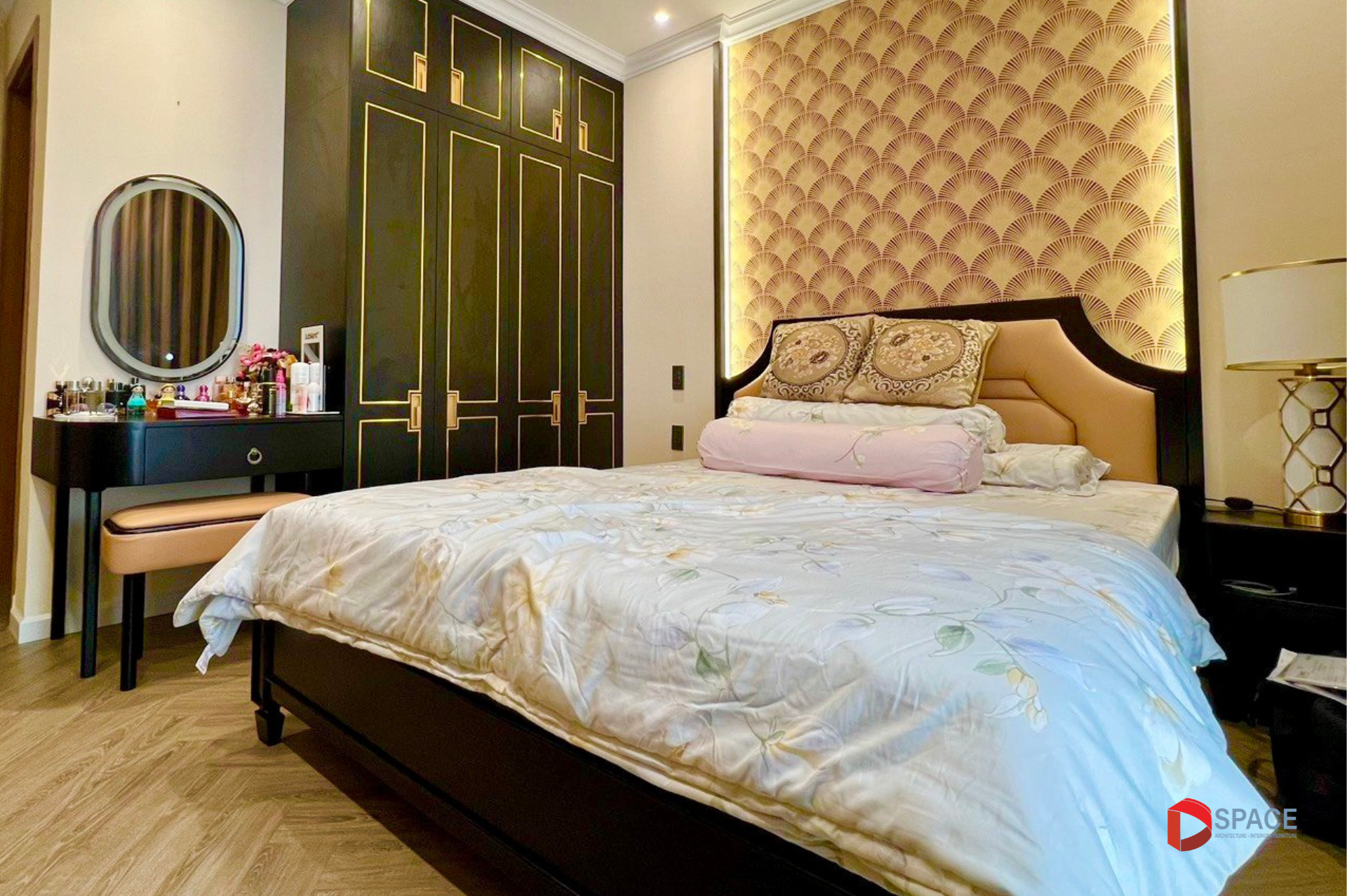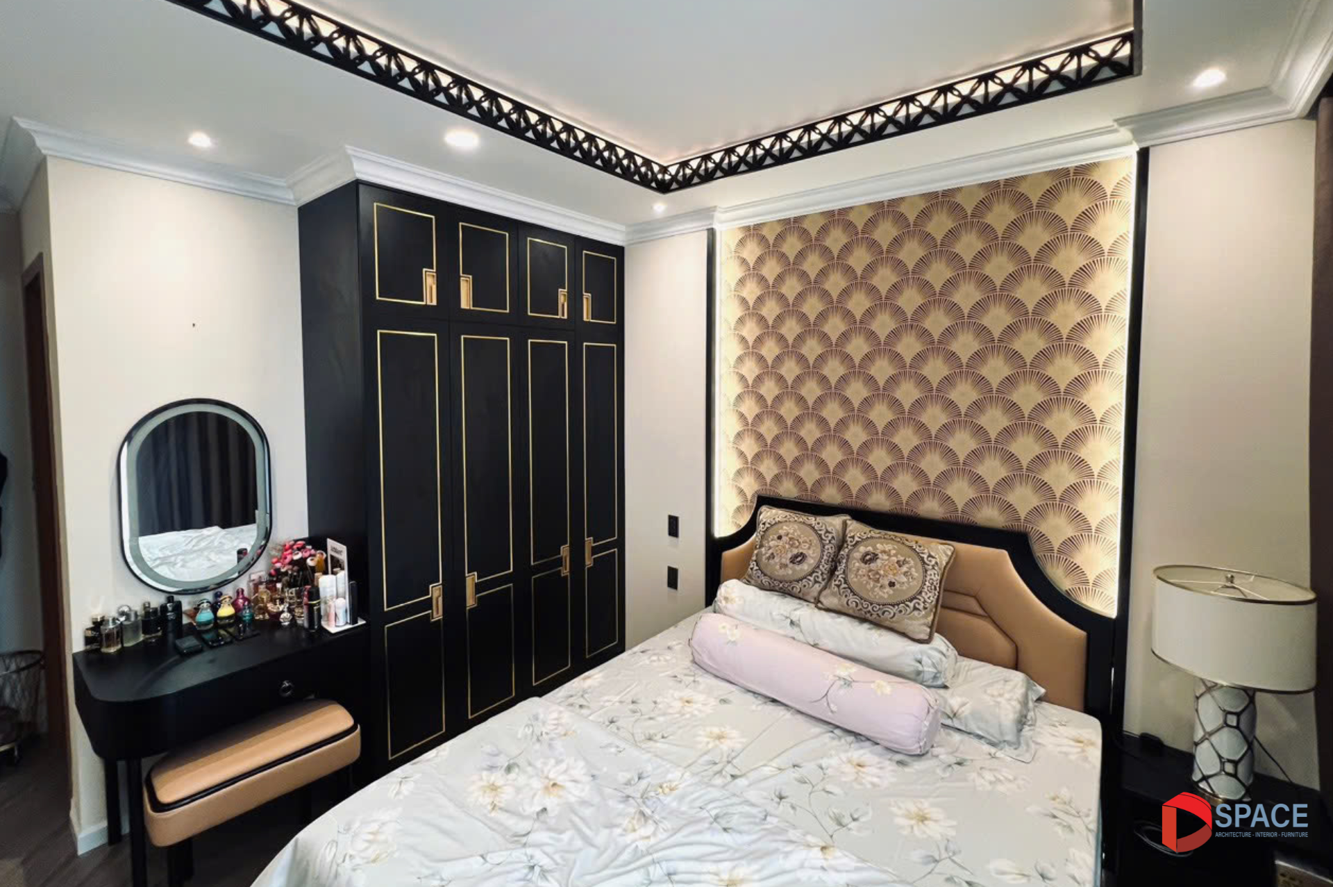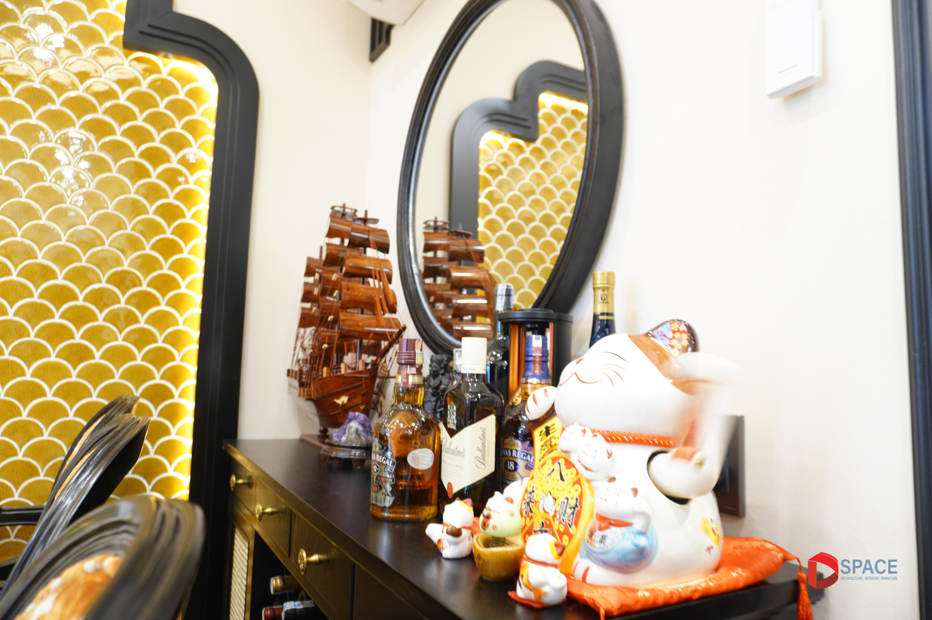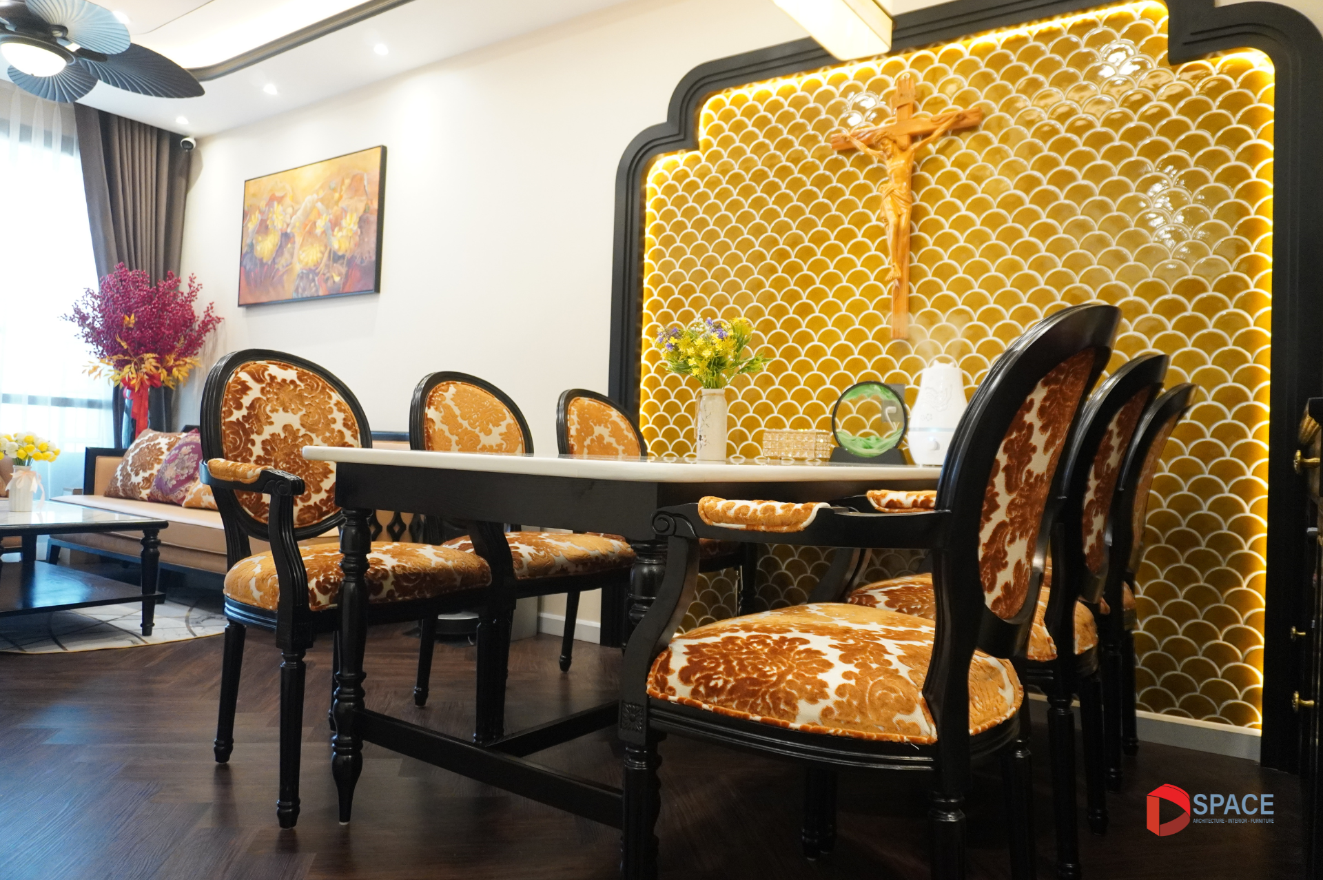 Dựa vào nhu cầu cải cách căn hộ 3 phòng ngủ thành 2 phòng ngủ để tăng diện tích sử dụng phòng khách, với thiết kế phong cách Indochine, DD SPACE hô biến căn hộ trở nên độc đáo, ấn tượng hơn.