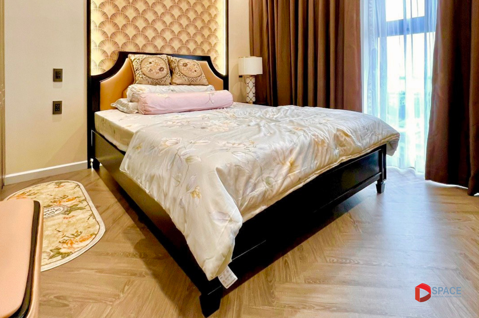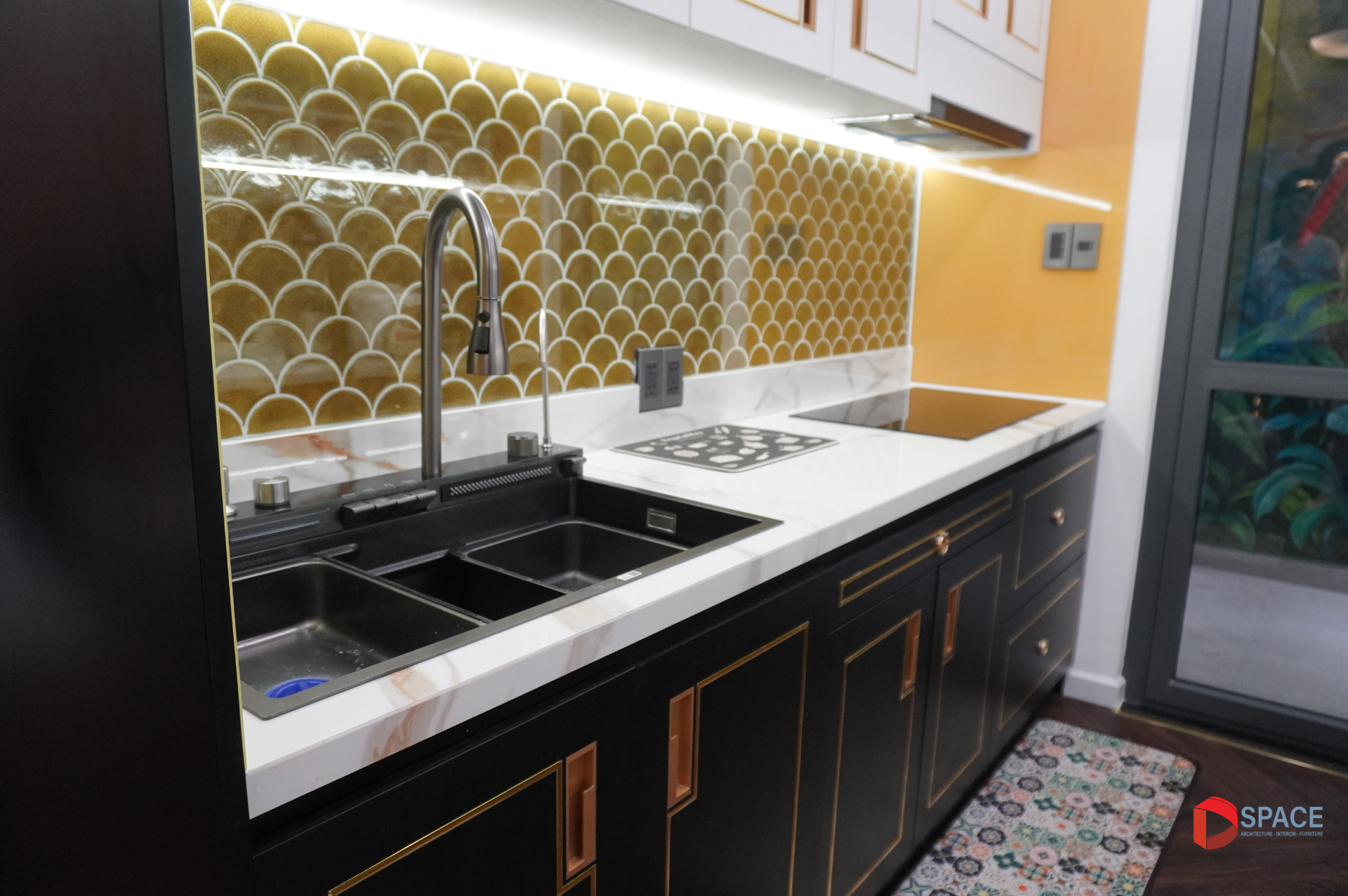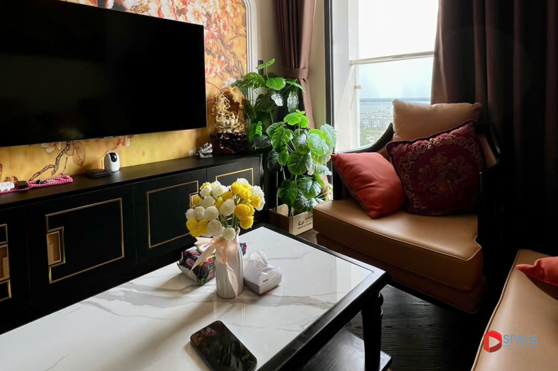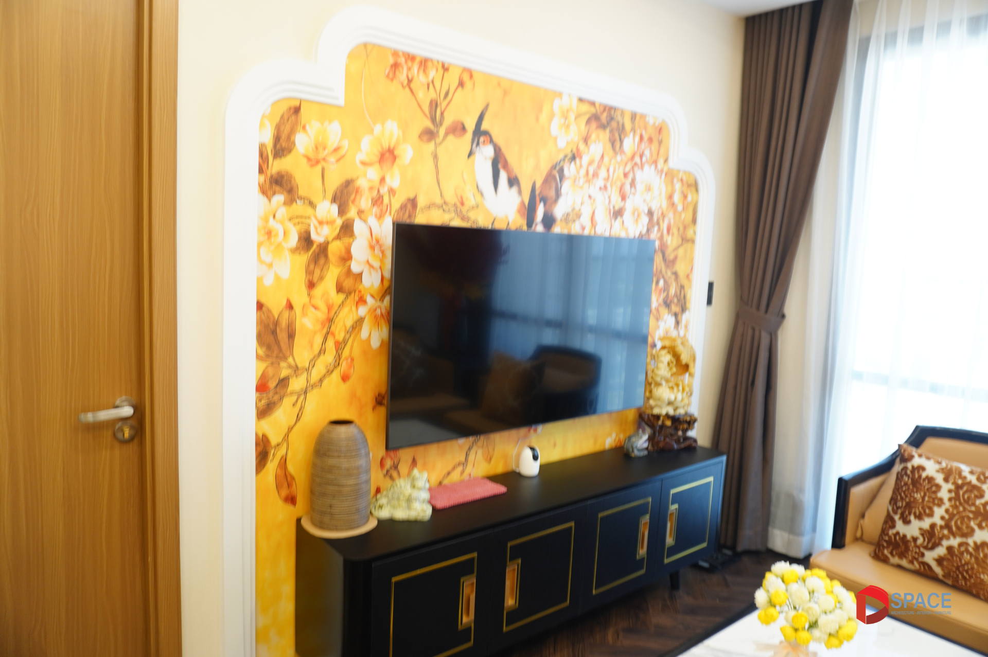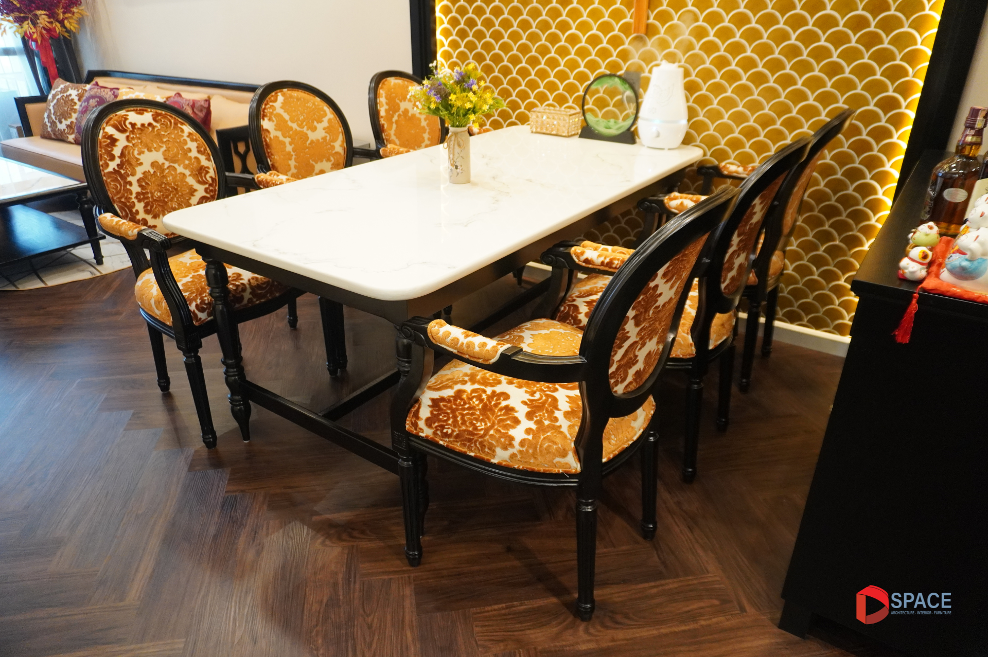 Dựa vào nhu cầu cải cách căn hộ 3 phòng ngủ thành 2 phòng ngủ để tăng diện tích sử dụng phòng khách, với thiết kế phong cách Indochine, DD SPACE hô biến căn hộ trở nên độc đáo, ấn tượng hơn.