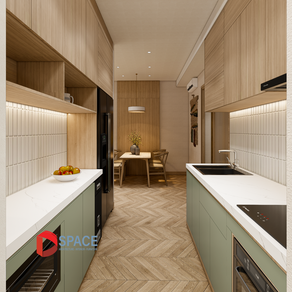 Dự án này mang đến sự tối giản và nhã nhặn, tạo ra một không gian sống gần gũi và thanh lịch. Tông màu pastel trắng kem và màu gỗ tự nhiên ấm áp làm nền tảng cho sự tinh tế và dễ dàng kết hợp với các yếu tố nội thất khác.