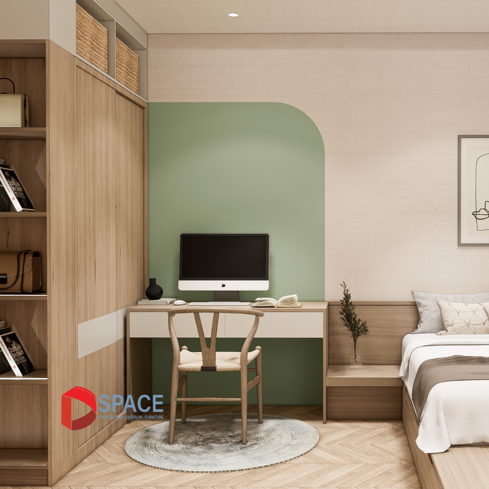 Để làm nổi bật không gian, chúng tôi đã thêm một vài mảng màu xanh pastel tinh tế. Màu xanh tươi mát này làm tăng thêm sự tươi mới và sự cân bằng tổng thể cho không gian, mang đến cảm giác thư thái và thư giãn.
