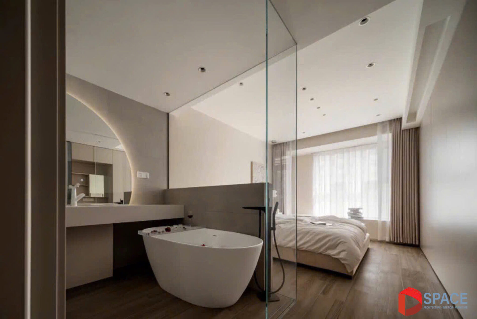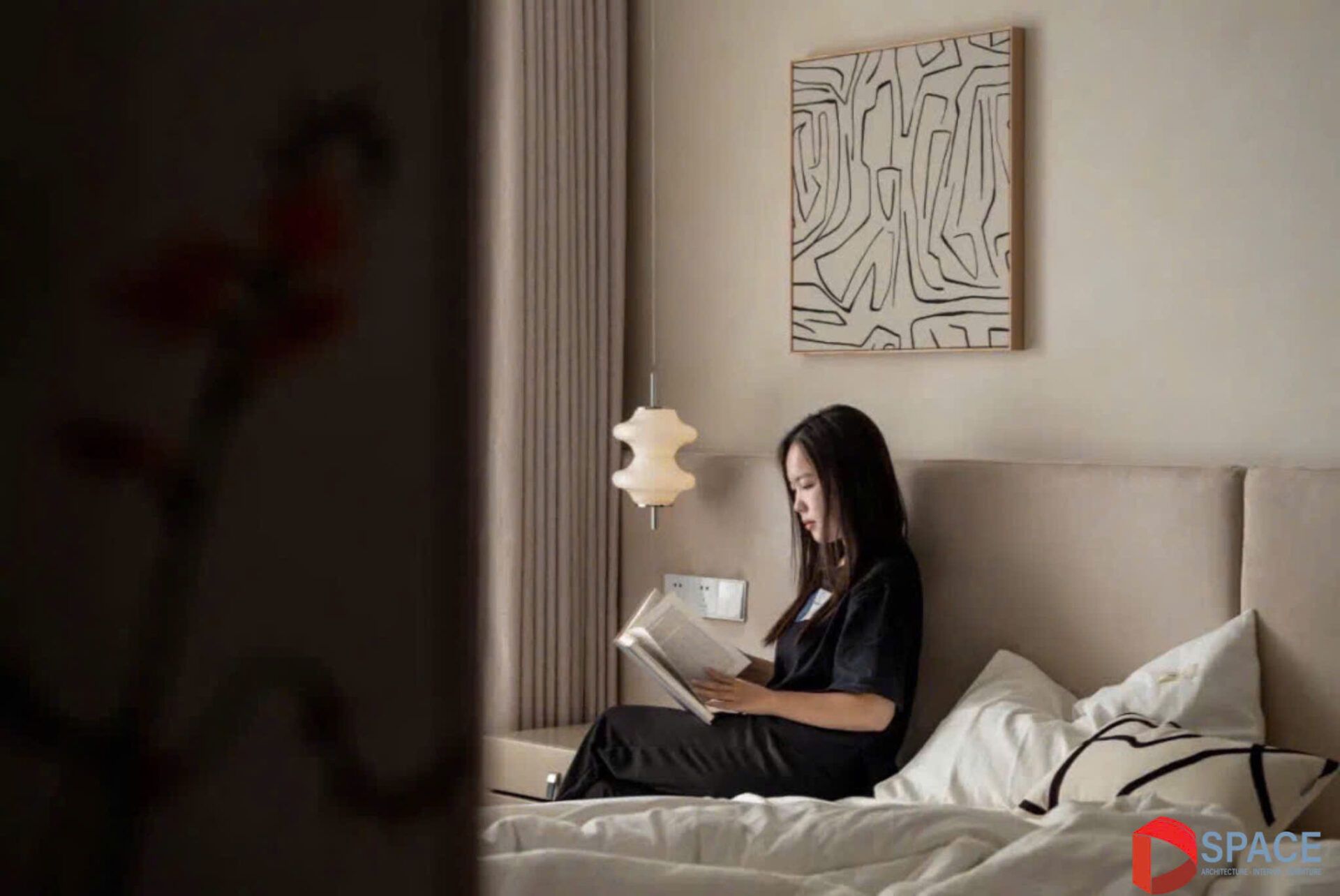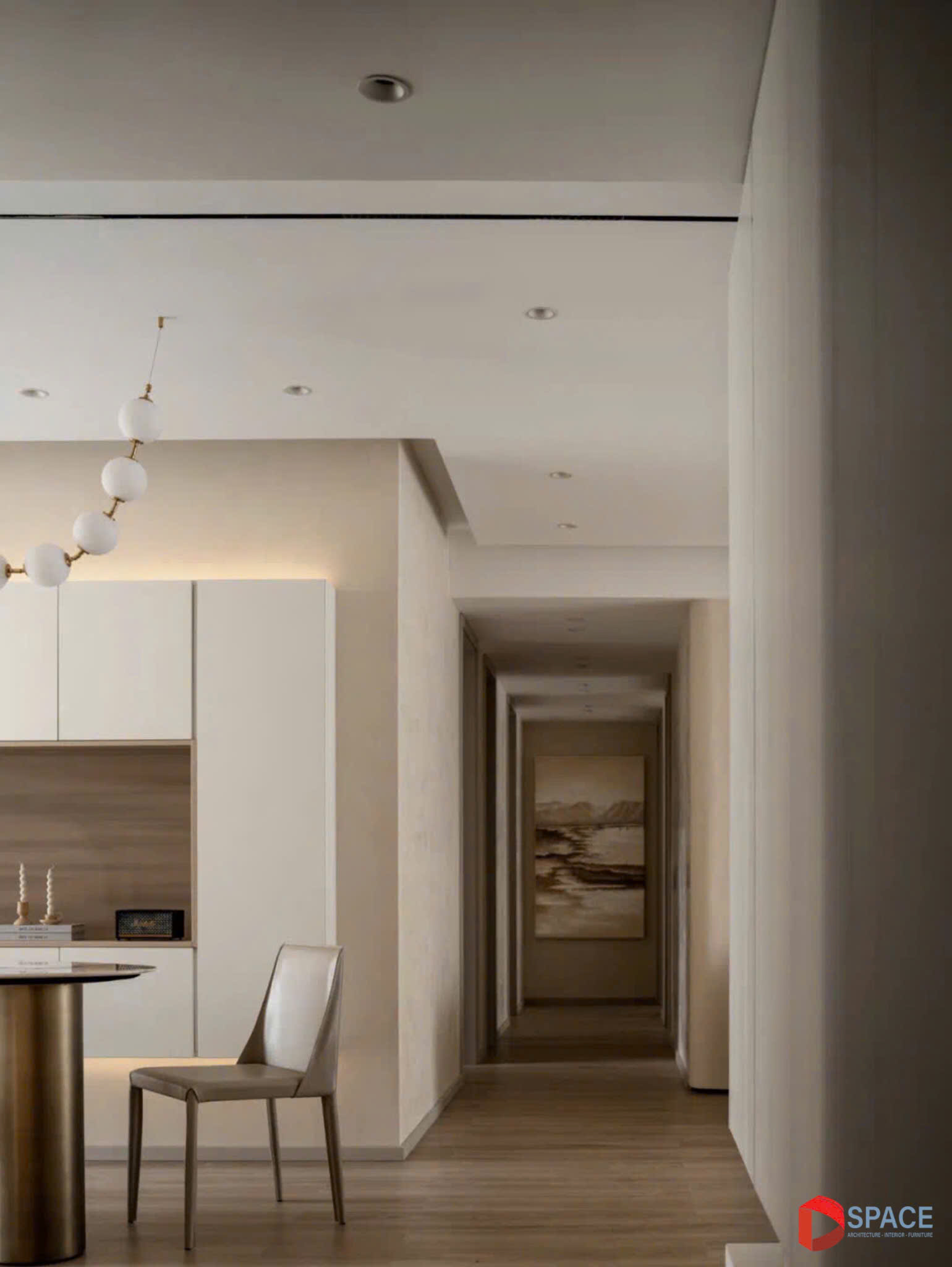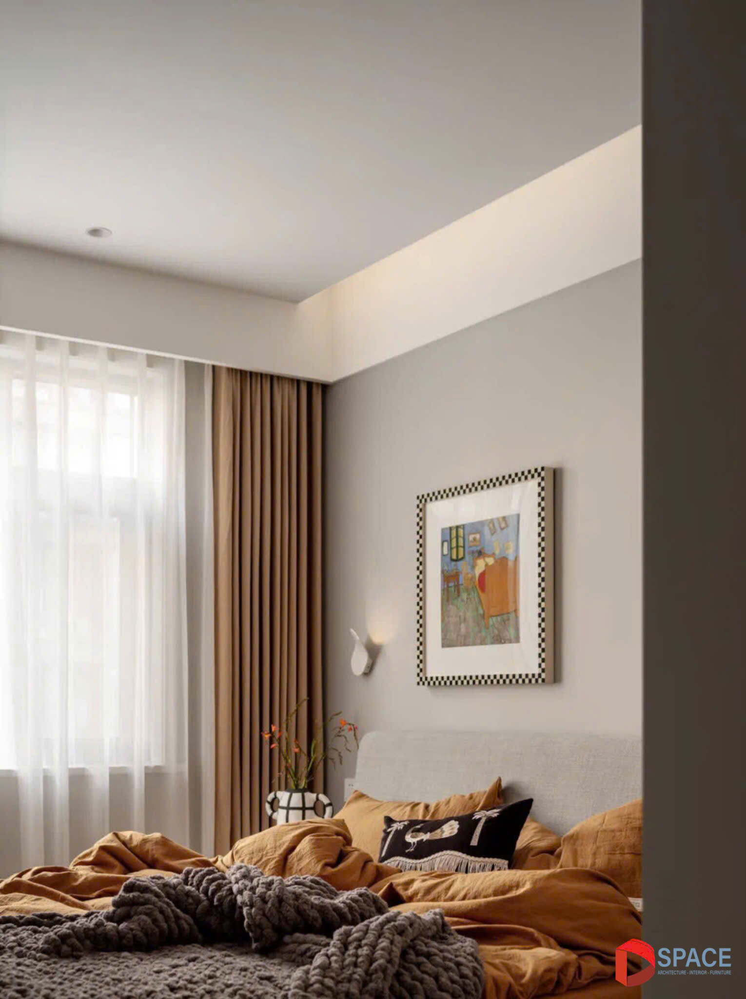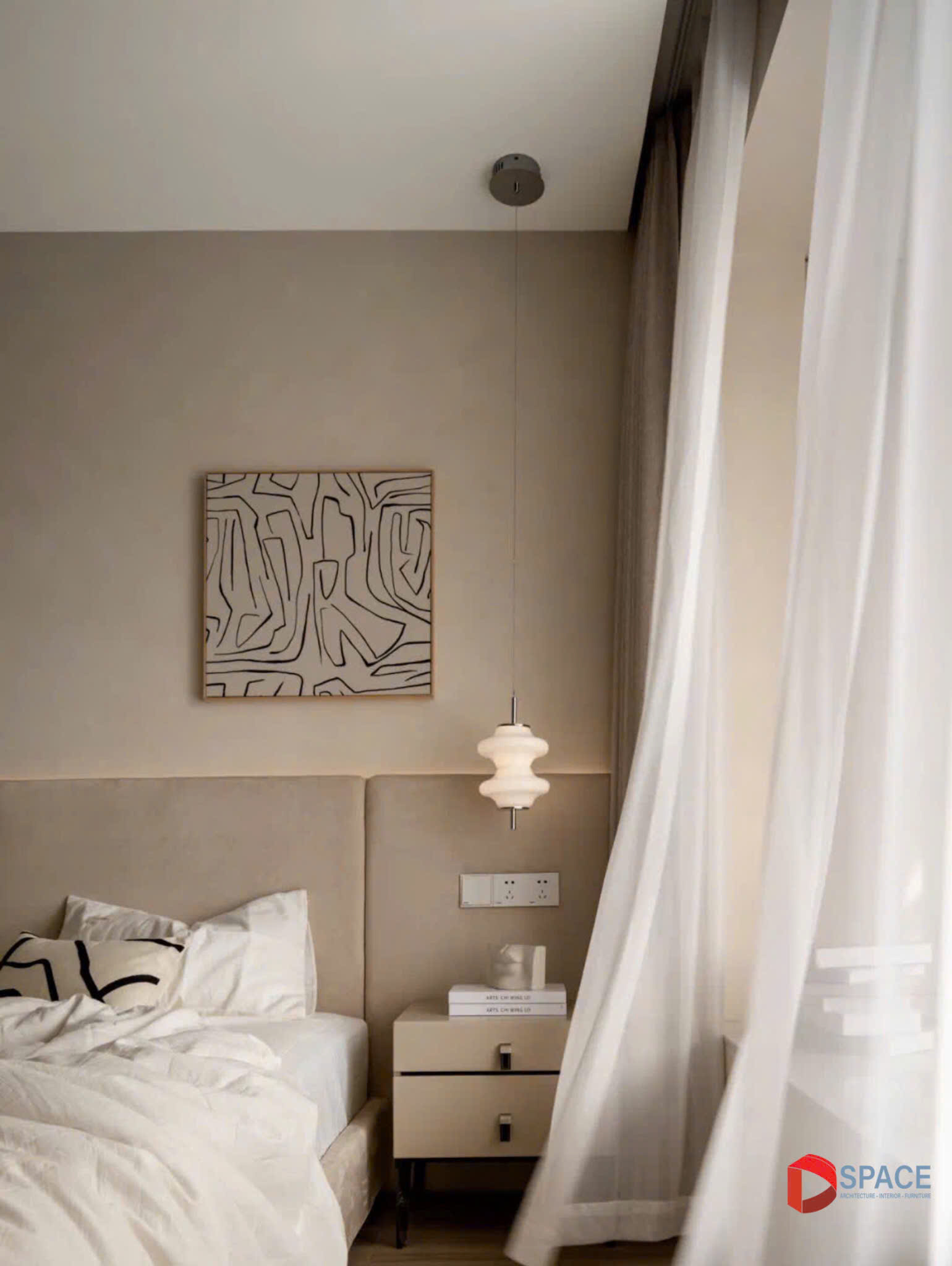 Sự hài hòa giữa màu sắc trung tính và bố cục tinh giản mang lại cảm giác thư thái, biến không gian thành nơi nghỉ ngơi lý tưởng, nơi sự sang trọng và yên bình đan xen một cách hoàn hảo.