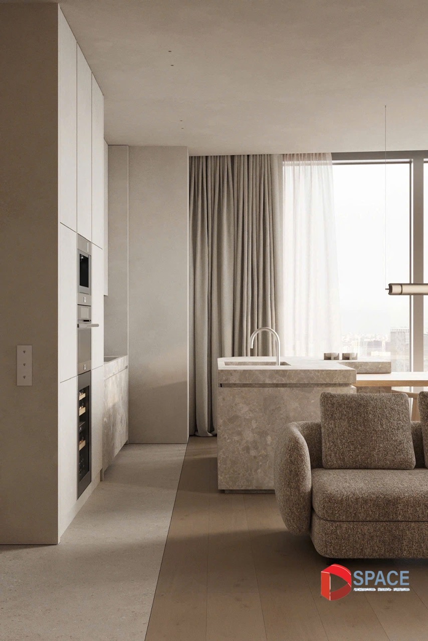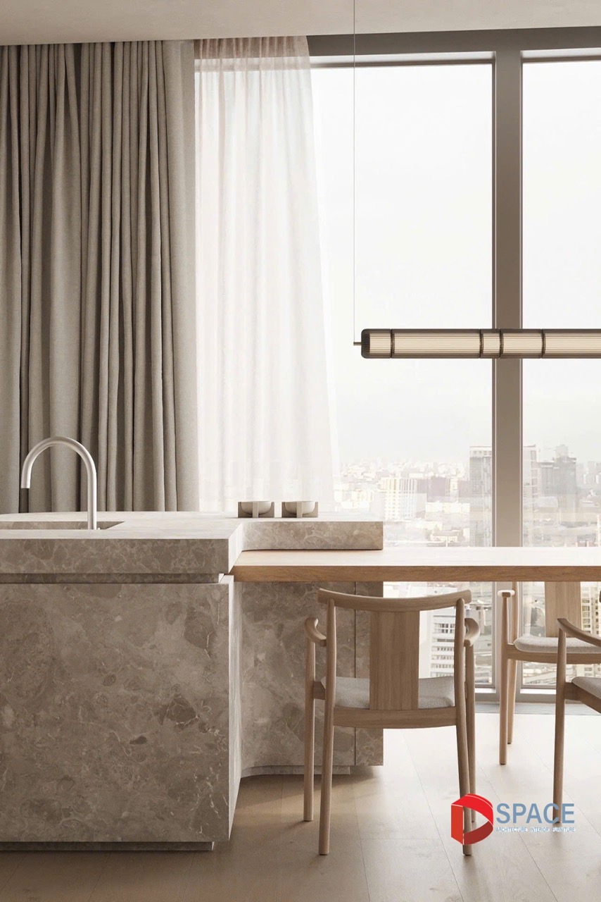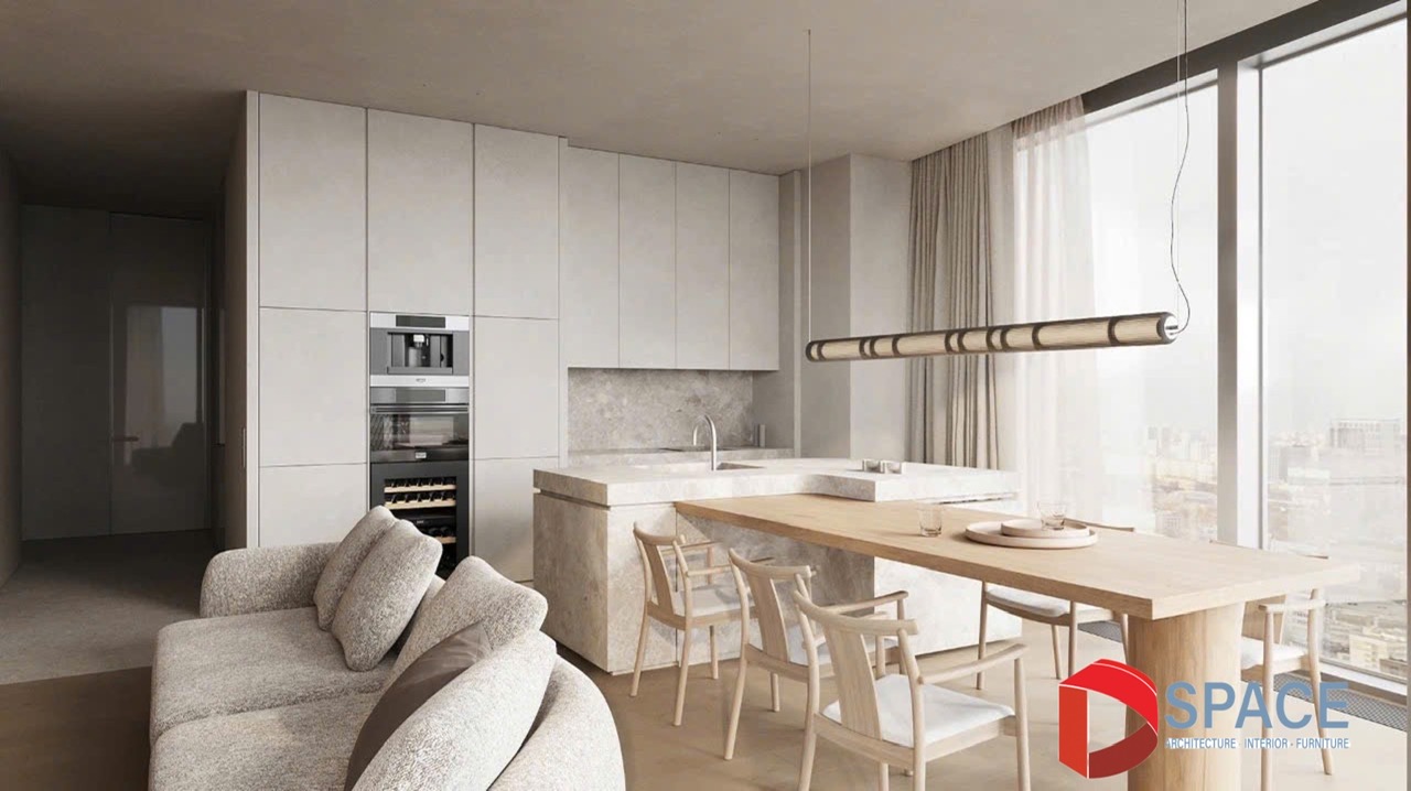 Màu sắc trung tính kết hợp với vật liệu cao cấp đã tạo nên vẻ đẹp thanh lịch và tinh tế. Chính sự tinh tế trong từng chi tiết đã tạo ra tổng thể hoàn mỹ, giúp không gian trở nên đẳng cấp và khác biệt.