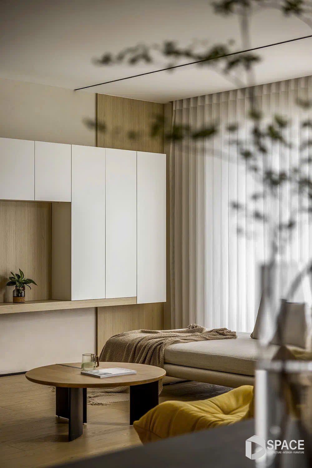 Bước vào căn hộ này, ta cảm nhận được sự ấm áp ngay từ cái nhìn đầu tiên, mọi thứ dường như được sắp đặt nhưng vẫn đầy dụng ý, mang đến một cảm giác nhẹ nhàng và thư thái. Những đường cong mềm mại bao trùm không gian cho ta một cảm giác bình yên khi trở về nhà sau một ngày làm việc vất vả. Nơi mà sự tối giản và tinh tế gặp gỡ.