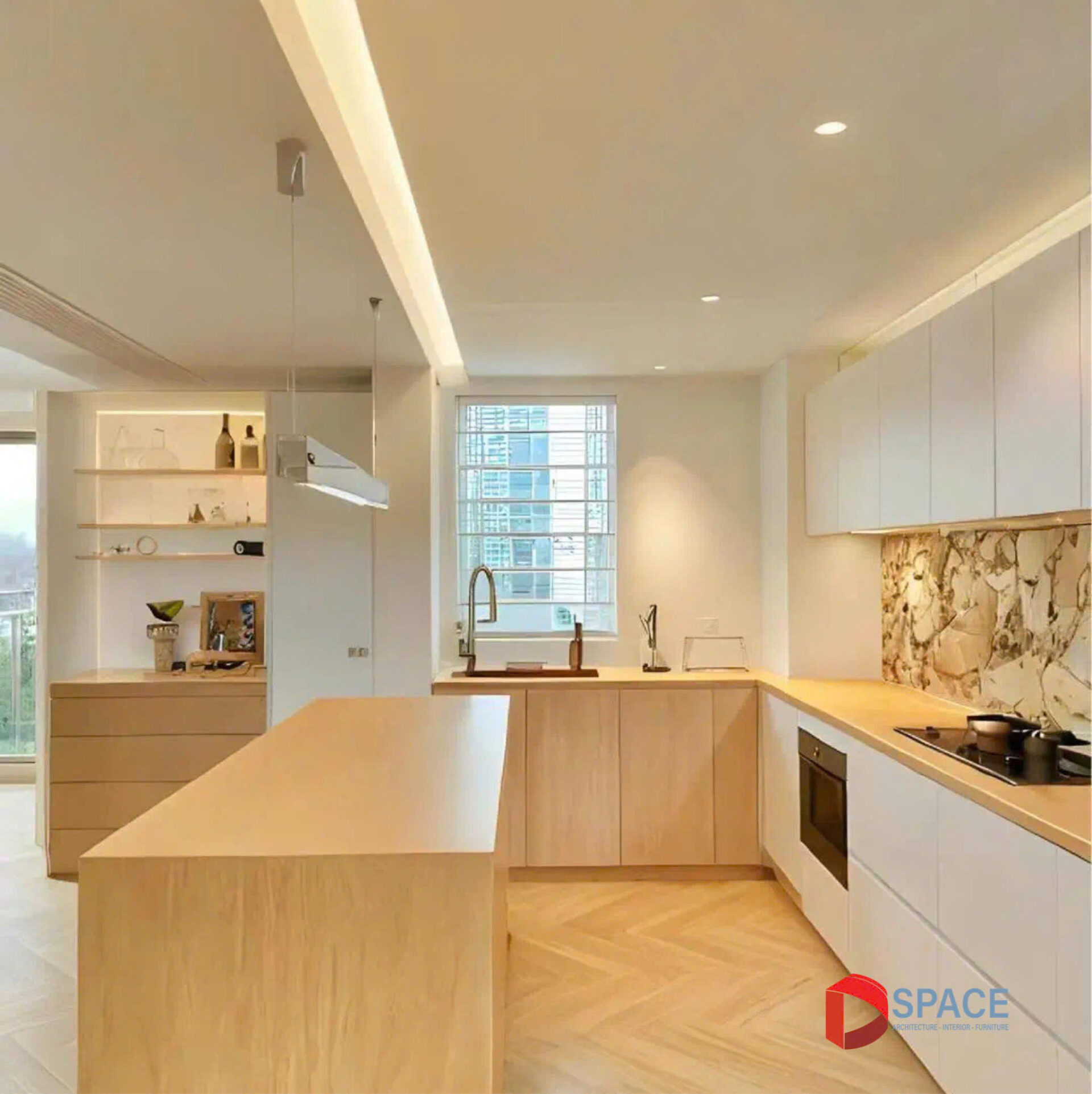 Bếp chữ U hoặc có đảo bếp: Tận dụng tối đa diện tích tường, tạo ra không gian lưu trữ và làm việc rộng rãi, cung cấp thêm không gian chuẩn bị thức ăn, lưu trữ đồ dùng và có thể kết hợp làm bàn ăn.Dành cho không gian rộng, nâng tầm trải nghiệm nấu nướng.