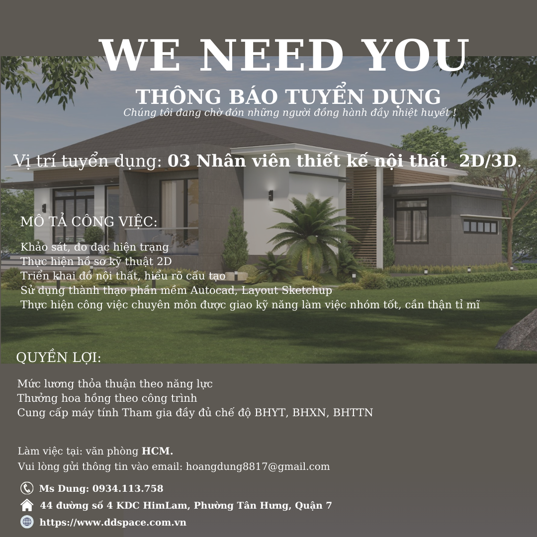 TUYỂN DỤNG KIẾN TRÚC SƯ / NHÀ THIẾT KẾ NỘI THẤT